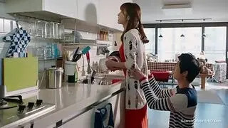 Japanese erotic scene featuring a skinny Asian brunette that has long legs